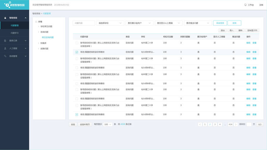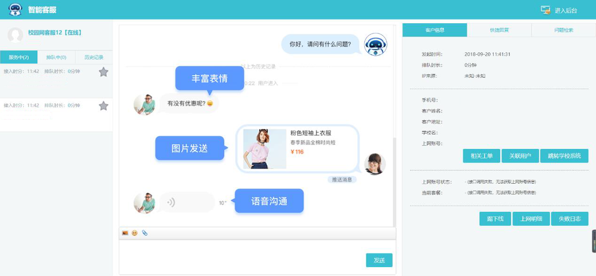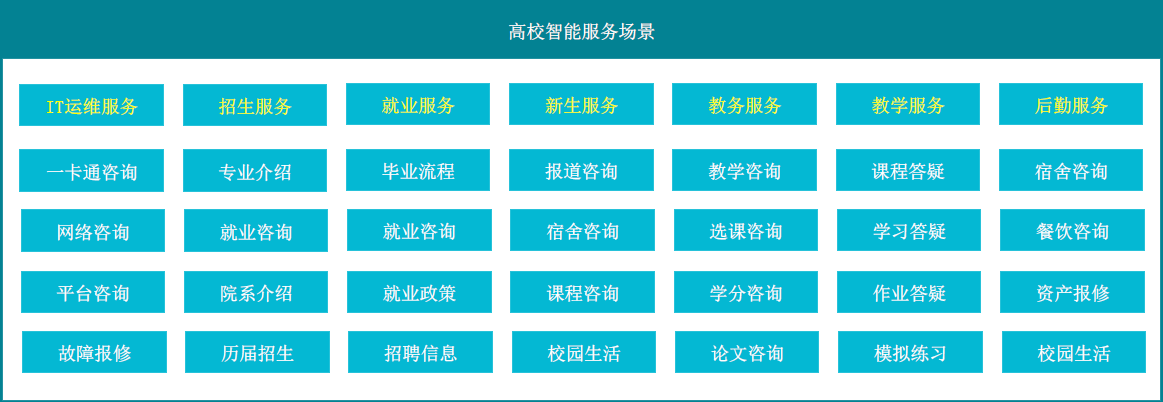 不同场景分配不同的客服,保证回复的问题不混淆常见服务场景现教中心、后勤处、教务处等